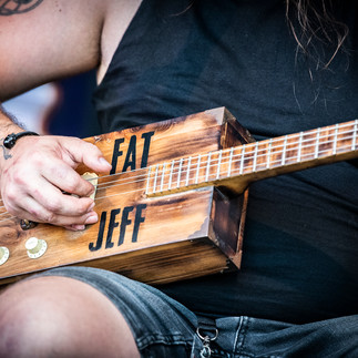 17h15, les concerts débutent avec l’excellent Fat Jeff, originaire de la région : sans aucun doute, mon coup de cœur de la journée ! J’ai accroché dès les premiers accords. Imaginez une sorte de Seasick Steve à la française, jouant sur des guitares artisanales fabriquées par un luthier du pays de Montbéliard.