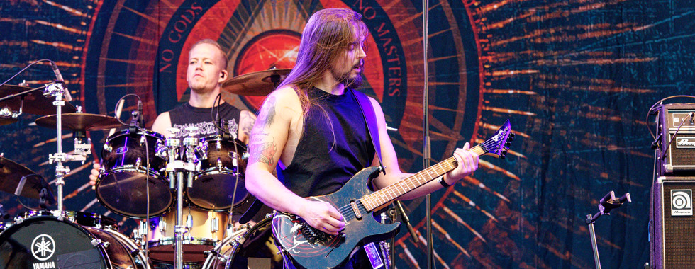 Place aux anglais de Onslaught sur la Menn Stage c’est un pur kiff d’enfin les voir sur sène, leur dernier album en date Generation Antichrist figurait dans mon top album de l’année 2020, ils délivrent du Trash sans concession, heureux d'entendre certains morceaux du dernier album en live, la batterie est en mode char d’assault, la basse rebondit, les guitares carrées, la voix du chanteur-guitariste, Dave, est rageuse, il n’y a aucun répit.